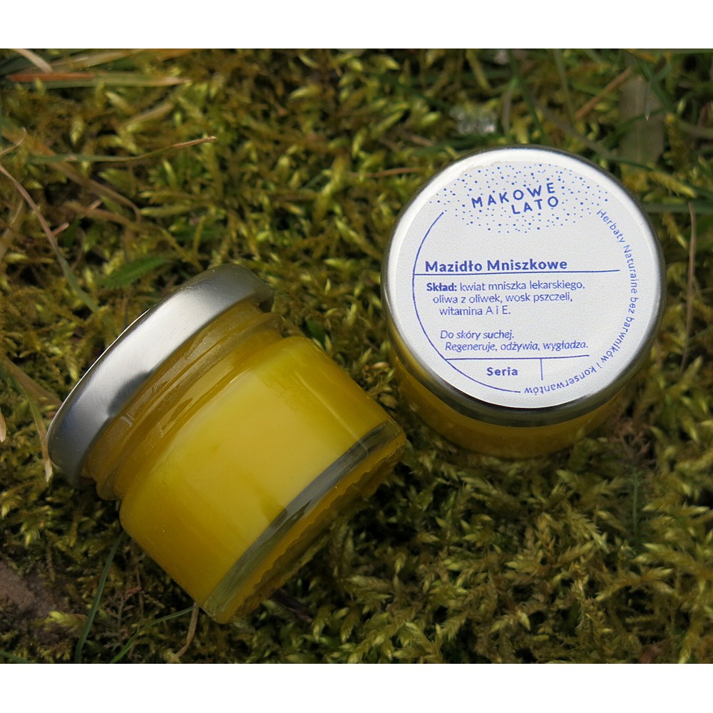 Naturalne mazidełko z mniszka lekarskiego o wielu zastosowaniach – nawilża, odżywia, łagodzi podrażnienia, wygładza i zmiękcza skórę oraz łagodzi podrażnienia. Działa też przeciwzapalnie. Można stosować na podrażnioną czy wysuszoną skórę.