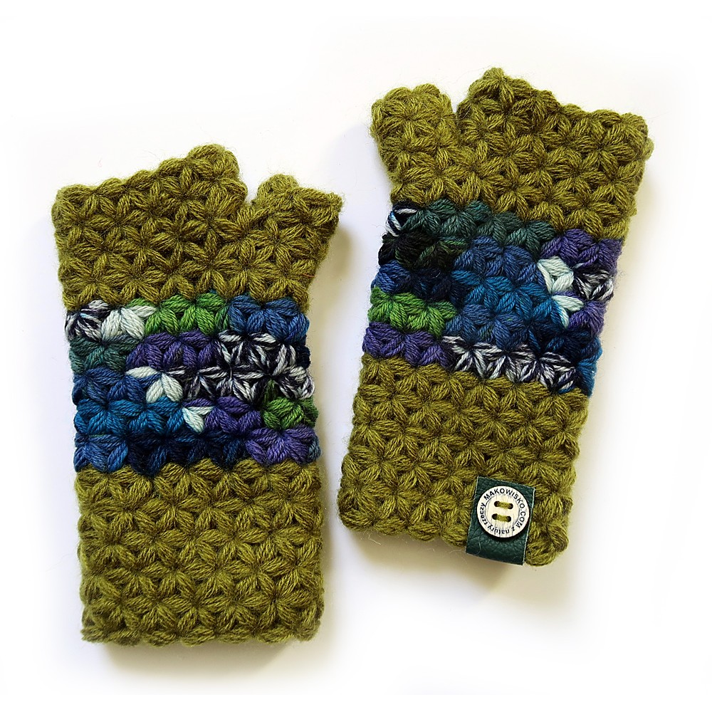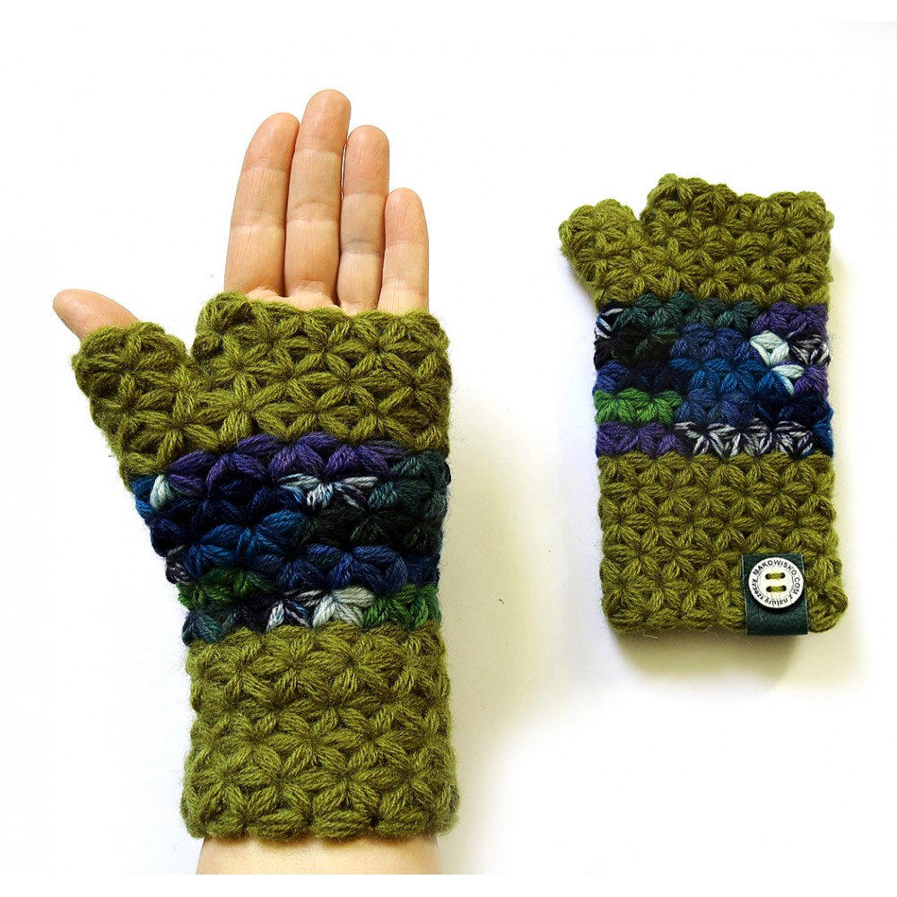 Cieplutkie mitenki wykonane na szydełku. Skład: wełna i akryl.