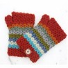 Mitenki posiadają doszytą metkę ze skóry oraz drewnianego guziczka.