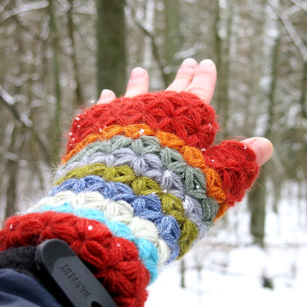 Cieplutkie mitenki wykonane na szydełku. Skład: wełna i akryl.